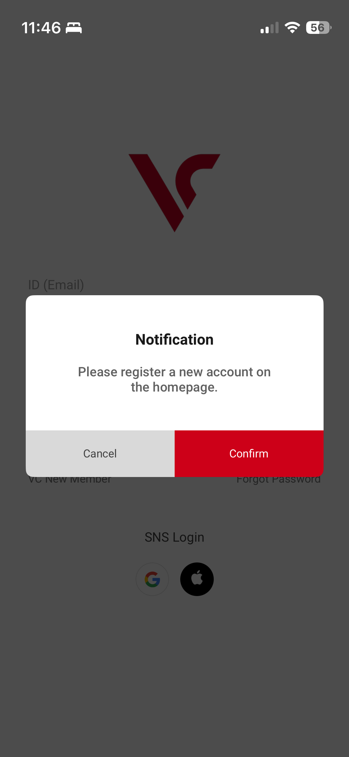 After I was done about 2 hours later, I tried logging in again, same error. So I called customer service and while I was on the phone with them I noticed the tiny, almost invisible link that says "VC new member", and thats the proper place to sign up.